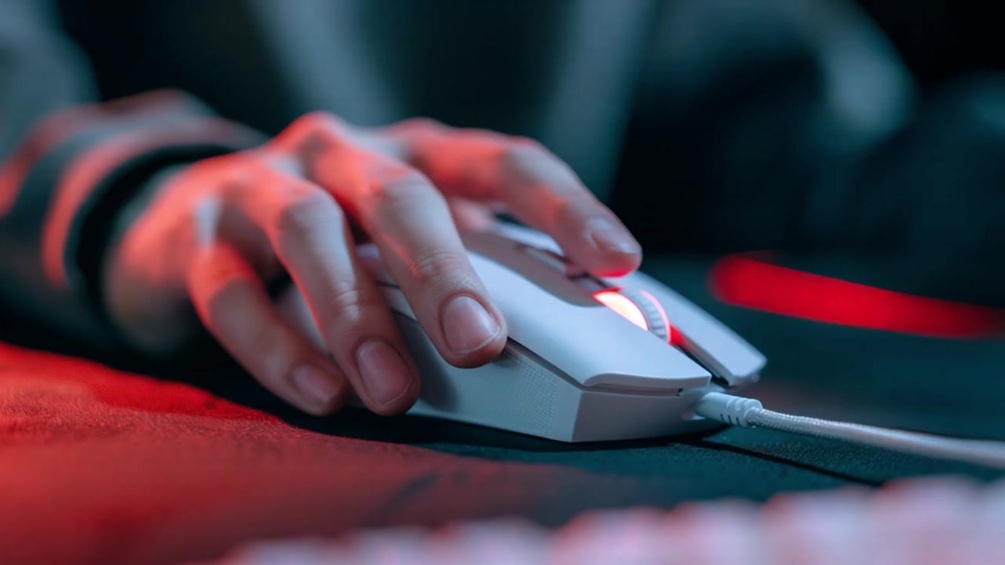 마우스 잡고 게임 플레이 하는 손